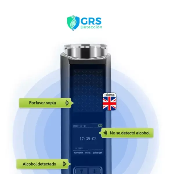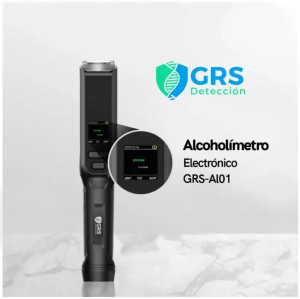 El alcoholímetro GRS-Al01 es un dispositivo portátil avanzado diseñado para la detección rápida y precisa de alcohol en sangre (BAC) mediante el análisis del aire exhalado. Con un rango de medición de 0 a 200 mg/100 mL BAC y una sensibilidad de 1 mg/100 mL BAC, ofrece precisión con desviaciones mínimas según la distancia de soplado. Dispone de un sistema de bombeo de aire continuo, una pantalla OLED a color de 1.29 pulgadas, y un menú operado mediante cuatro botones independientes. Funciona en temperaturas de 0 a 50 °C, con una humedad de 20% a 98% y presiones de 600 a 1,400 hPa. Alimentado por una batería de litio 18650 de 4.35V y 3000mAh, soporta más de 500 pruebas continuas. Pesa 263g, mide 261mm de largo y 45mm de diámetro, y consume 120mA en operación normal y 300mA con la luz encendida. Además, incluye un sensor de celda de combustible, una linterna de luz blanca, y funciones de bastón con luces roja y azul. Este alcoholímetro es ideal para controles policiales y empresas de transporte, ofreciendo mediciones rápidas y precisas en diversas condiciones ambientales. El uso de alcoholimetro en las empresas es esencial hoy día para